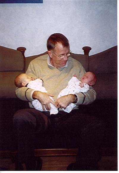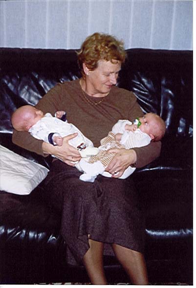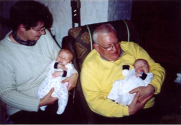 Torben en Kobe bij oma en opa, de ouders van Bart